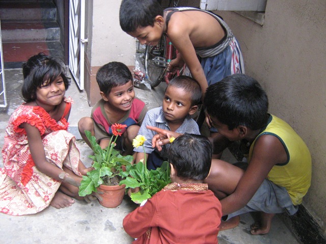 Symbolically the students planted a few plants in front of Utsarga's premises.
